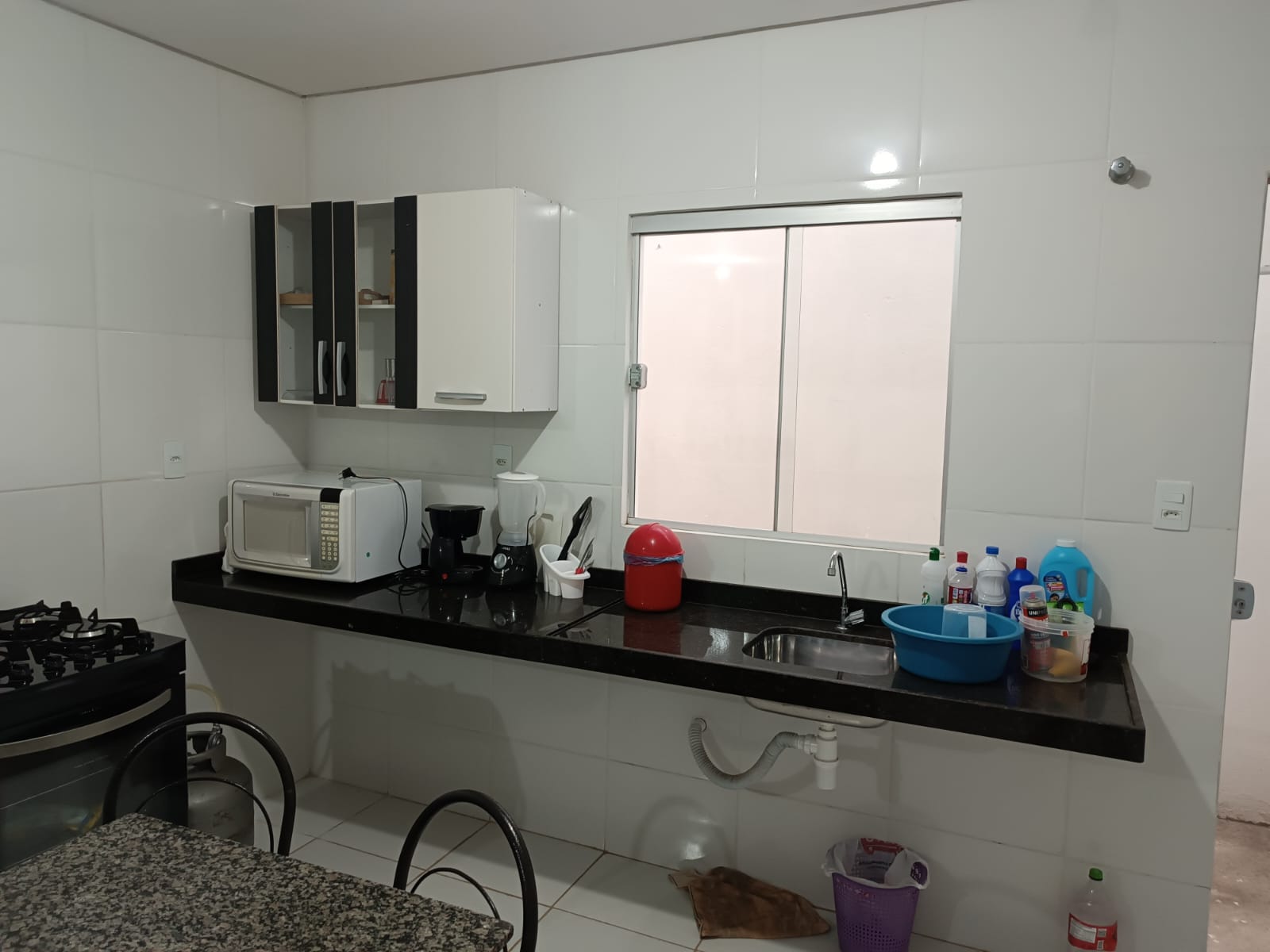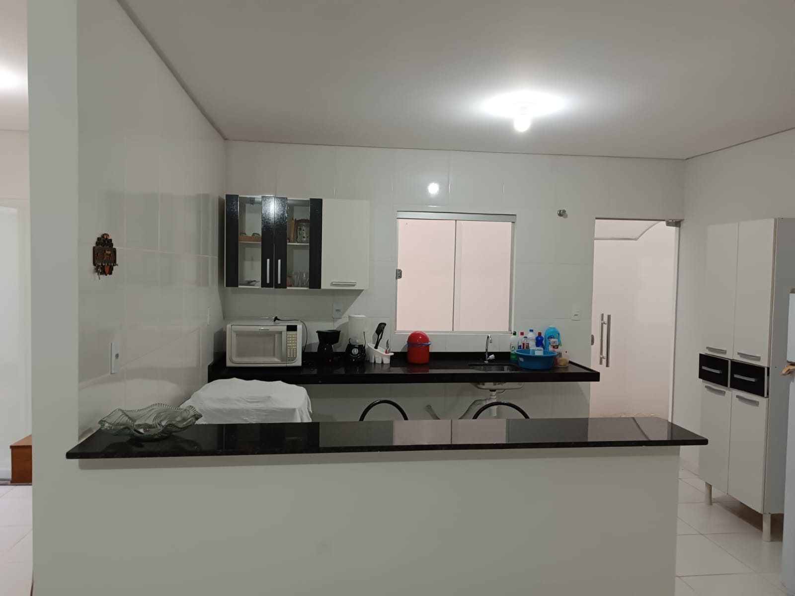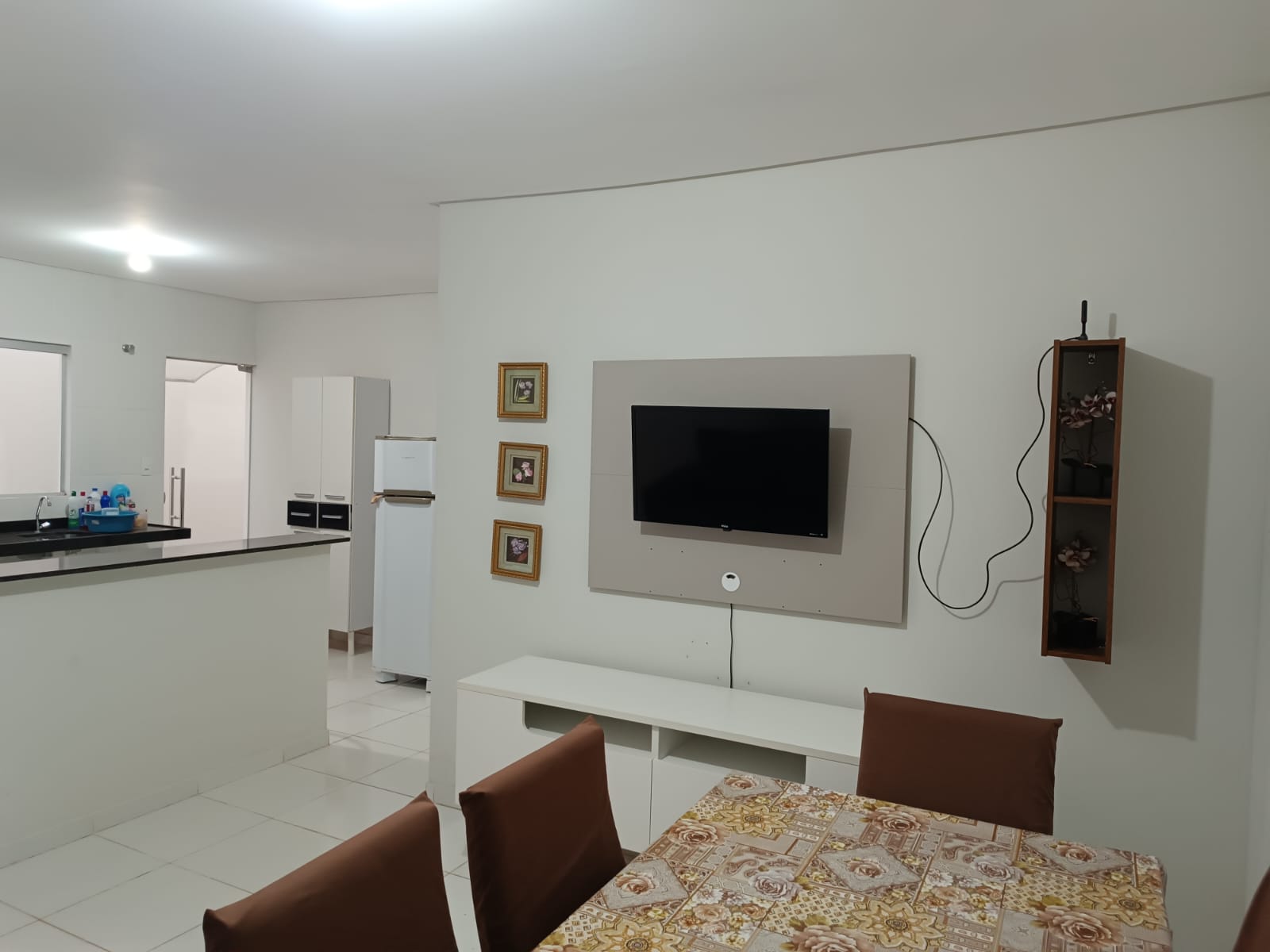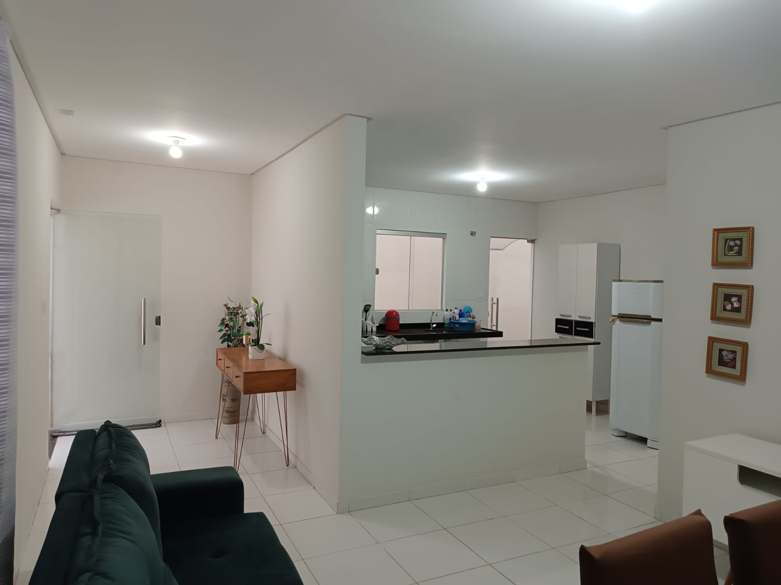 01 suíte; 02 quarto social; 01 banheiro social; 01 jardim de inverno; 01 sala; 01 cozinha; 01 área de serviço e 01 garagem.